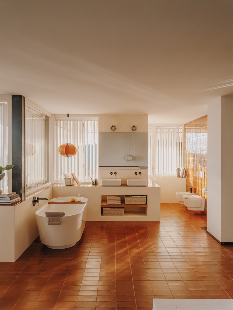Kada Tura je istovremeno voluminozna i lagana, a njezin ergonomski dizajn namijenjen je odmoru i opuštanju. Njezin jedinstveni oblik slaganja inspiriran je arhitektonskim konzolnim sustavom, stvarajući dojam da kada lebdi u prostoru. Izrađena je od Stonex®-a, inovativnog materijala koji omogućuje vrlo precizne oblike, uz tanke i linearne forme koje su omogućile stvaranje suptilnog ruba uz rub kade kako bi se drvena polica držala na mjestu.